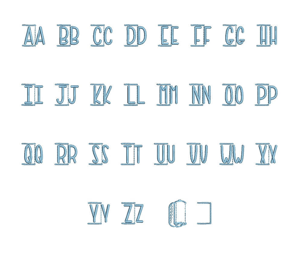 This Embroidery Font Alphabet set contains: